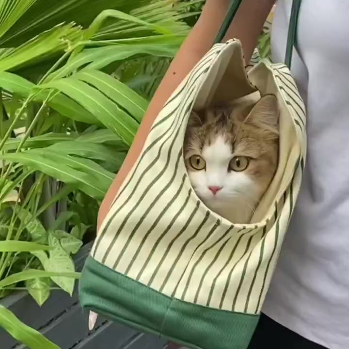 A stylish carryall for everyday adventures. This retro striped canvas pet carrier tote keeps your small dog or cat close and comfortable on coffee runs, markets, vet visits, and city strolls. Lightweight yet sturdy, it adds a reinforced, foam-padded base panel for stable, cushioned support, plus an internal safety leash clip for security. Choose from multiple vintage-inspired colors to match your look.